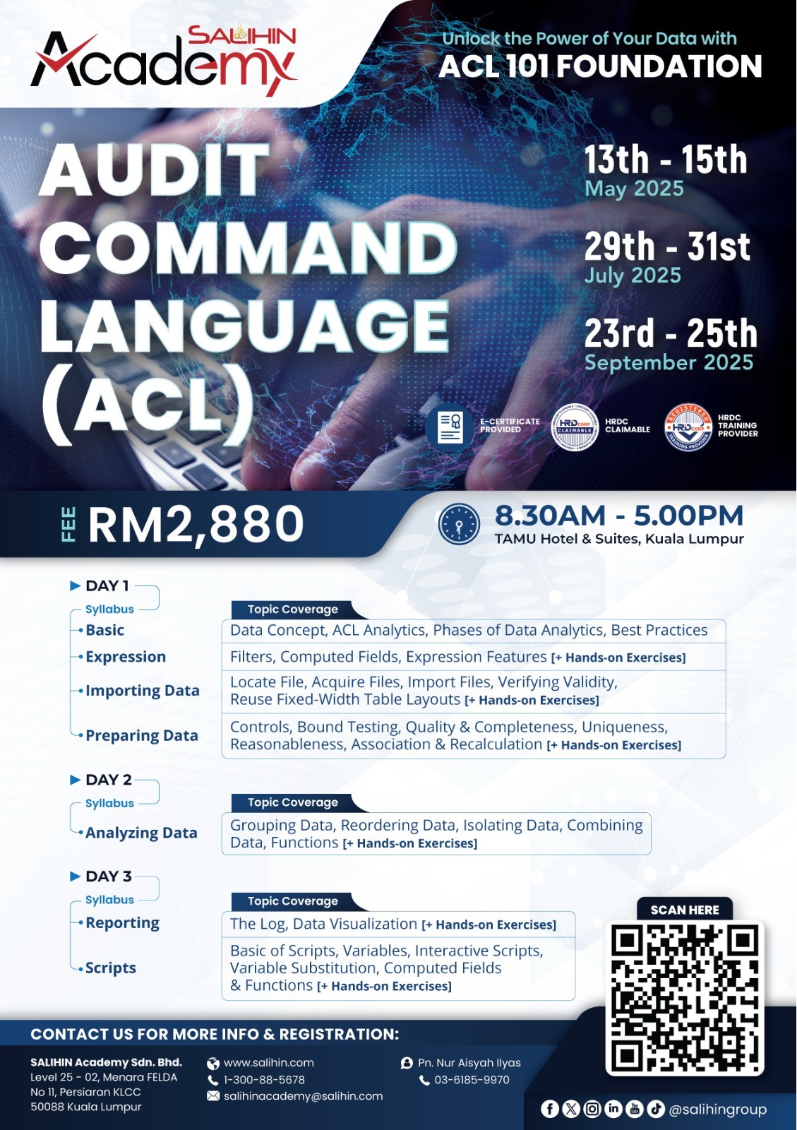 - Learn the basics of ACL, with a focus on expressions, importing data, and preparing data for analysis. Participants will explore key concepts, apply filters, and validate data quality through hands-on exercises.